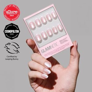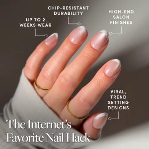 Pure and simple. timeless style at your fingertips. Angelic Touch pairs a nude velvet base with classic white French tips. creating a short oval mani that feels both elegant and effortlessly fresh.