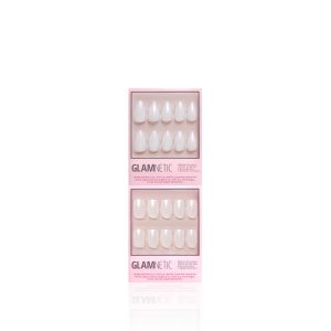Hailey – Short almond nails with a semi-transparent white glazed finish