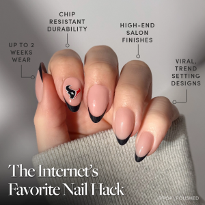 Your game day glam just got an upgrade. The Houston Texans Press-On Nail Set features short almond manis — decked out with Texans-blue French tips and logoed accent nails to create next-level fan fingers. Finished with a high-shine gloss. these touchdown-worthy tips are ready to win Sundays (and every day after). Go Texans!