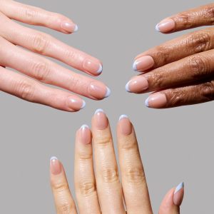 Drift away with the Into Blue Press-On Nail Set. Inspired by calm waters. these short oval nails feature a semi-transparent base and soft periwinkle micro French tips. Finished off with a glistening glaze. these manis deliver long-lasting salon-quality in just 5 minutes.