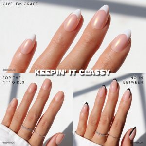 This is for the girls who mean BUSINESS. The KEEPIN’ IT CLASSY bundle serves three effortlessly chic press-on nails for those who celebrate the clean-girl look. With short almond and short squoval shapes. each of these nails is sleek with high-shine gloss and minimalist designs for that just-left-the-salon. always put-together look.