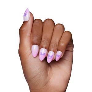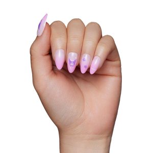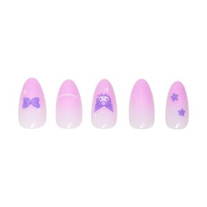 For all the Kuromi lovers. get ready to sweeten up your fingertips with the Kuromi™ Nail Set. This short almond design features an ombre base with graphics of the friendly rival herself. with an addition of 3D design accents. plus star and ribbon graphics you’ll love.