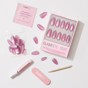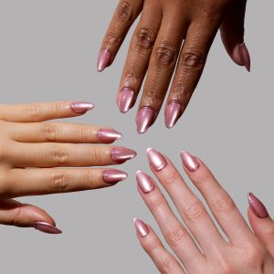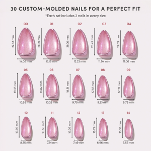 Elegant and chic. the Mertini Press-On Nail Set brings deep-sea elegance to your fingertips. These dreamy pink nails mesmerize with a rich velvet finish that shimmers from every angle. Mertini is a warmer-toned pink with a rosy or mauve base and a subtle magenta undertone. giving it a slightly deeper and richer appearance. Even more captivating. raised foil accents frame each fingertip. accentuating their short almond shape and creating a luxe. elongated look.