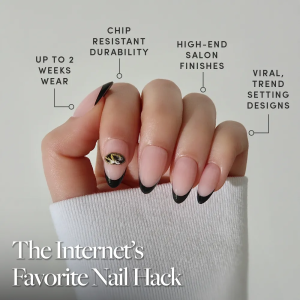 Rep your school colors in every way possible. The Missouri Tigers Press-On Nail Set pays homage to the Tigers with black French tips and accent nails flaunting the iconic team logo. Designed in a short almond shape with a sleek. glossy finish. these salon-quality nails are easy to apply in 10 minutes — right before tailgates or even during game-day commercial breaks. M-I-Z!