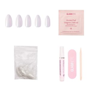 Carry the beauty of the sparkling moonlight with you when you wear these pearlescent white nails. Each short. almond shaped nail in this set is crafted to be effortlessly applied and naturally shaped to match the look and feel of your genuine nail. The starlight-like glow of this set is sure to brighten up any daytime or evening event.