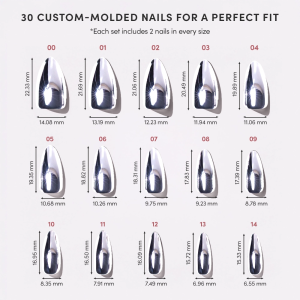 Unapologetically iconic. Platinum gleams in a molten silver chrome that captures the energy of speed. light. and luxe. The Short Almond shape brings just the right dose of polish. balancing minimalism with high-impact shine. Timeless. Futuristic. Always ahead.