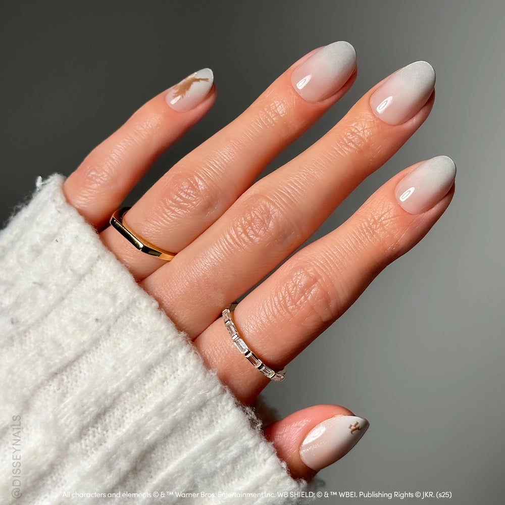 Wisdom never looked so striking. The Rowena Ravenclaw™ Nail Set pairs a nude-to-grey velvet fade with subtle house motifs. echoing the wit. elegance. and sharp intellect of its namesake founder. Finished in a velvet short oval shape. it’s clever. refined. and as timeless as Ravenclaw’s legacy.