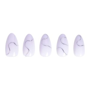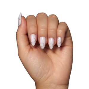 Show off your winter style game with the Silent Night nail set. This classic design with a twist features a natural. semi-transparent white base with silver 3D swirls you’ll love to dress up or down. Plus. the always-in-style short almond shape is perfect to pair with all your casual to glam looks this holiday season.