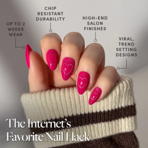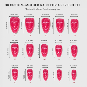 Make them say miss you first with the Text Me Back nail set. This playful short almond design features a bold. hot-pink velvet finish and magnetic cat-eye heart accents that dazzle with your every move. It’s flirty. fun. and impossible to leave on read.