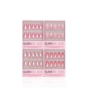 – Shine For You: Our short almond nail set with a rosy pink velvet base and subtle silver cat-eye magnetic tips