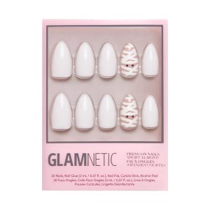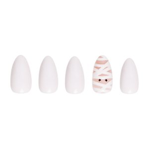 We are simply mummified by the adorable Wrapped Up Nail Set! This short almond design keeps it minimal-chic with a solid-white design and accent nails adorned with the cutest little mummy face that will be sure to unravel all the compliments this season.